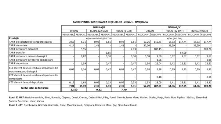 Localităţile aferente Zonei 1 Timișoara rural: